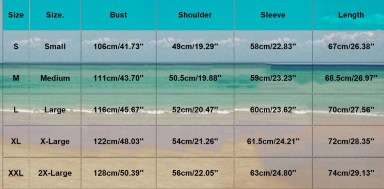 Sizes: S, M, L, XL, XXL